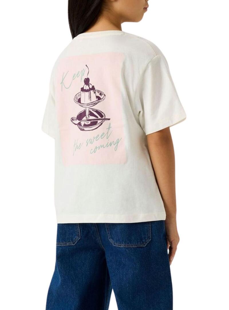 Camiseta Name It Bena com estampa gráfica em tom cru para menina.