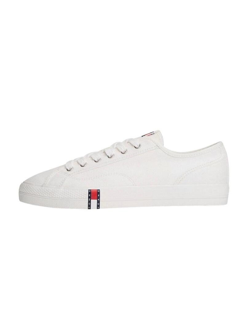 Sapatilhas Tommy Jeans. Modelo Archibe Y2K. Cor branca. Fecho com cordões. Parte superior de lona de algodão. Sola de borracha branca com logotipo no lado exterior.
