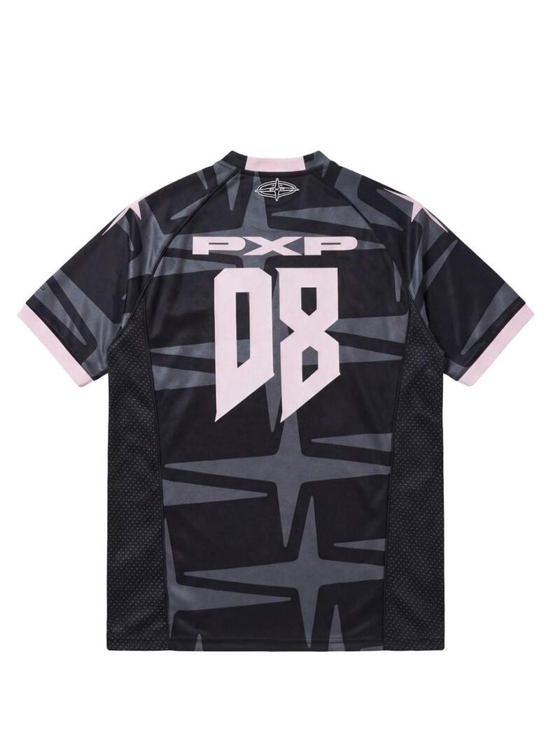 Camiseta Project x Paris. Regular fit. Cor preta. Gola redonda. Manga curta raglã. Painéis laterais de malha. Estampado. Detalhe de letras na frente e nas costas. O modelo veste o tamanho L.