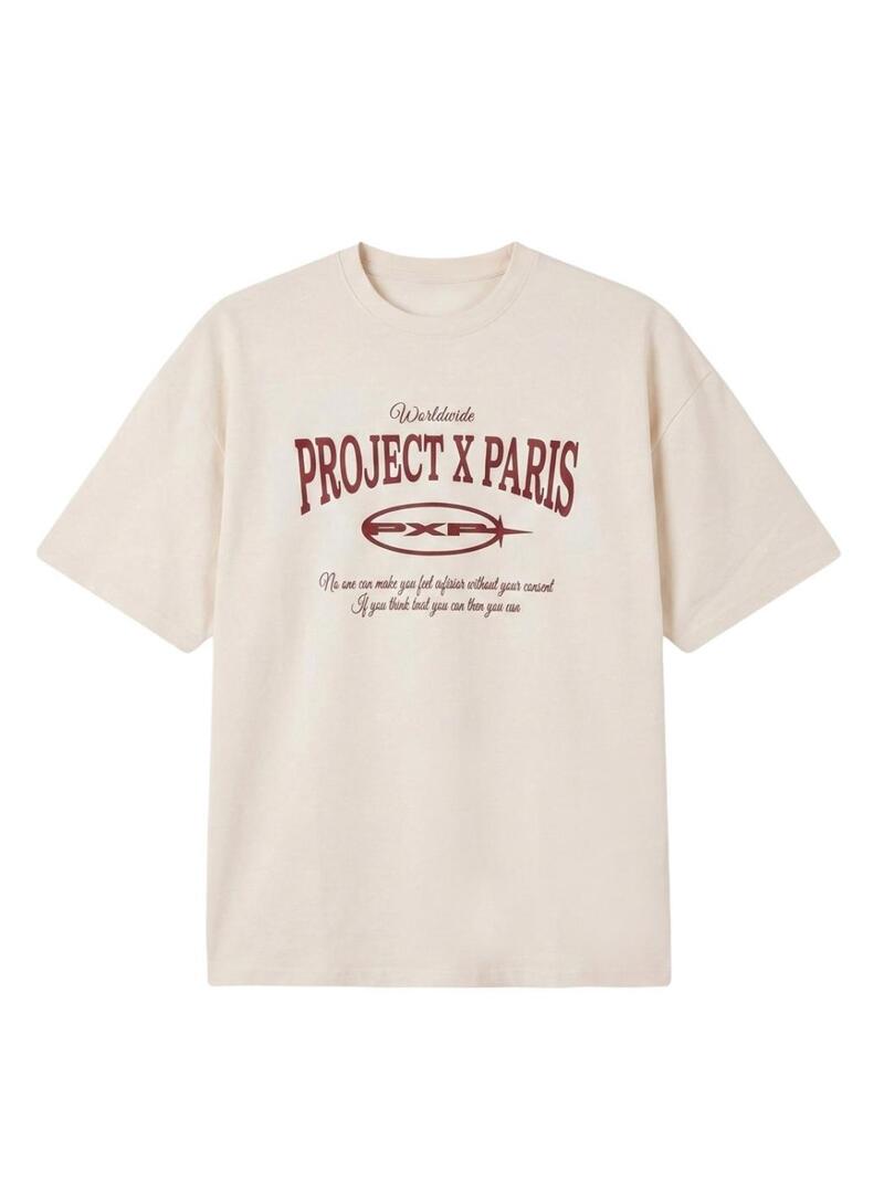 Camiseta Project x Paris Varsity PXP bege para homem.