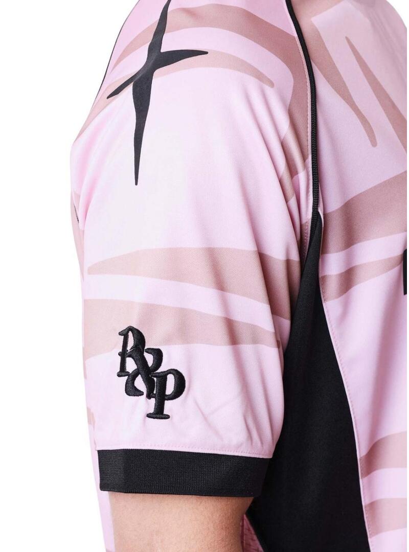 Camiseta Project x Paris. Cor rosa. Corte regular. Estampada. Gola redonda. Manga curta raglã. Painéis laterais de malha. Detalhe de letras na parte da frente e nas costas. O modelo veste o tamanho L.