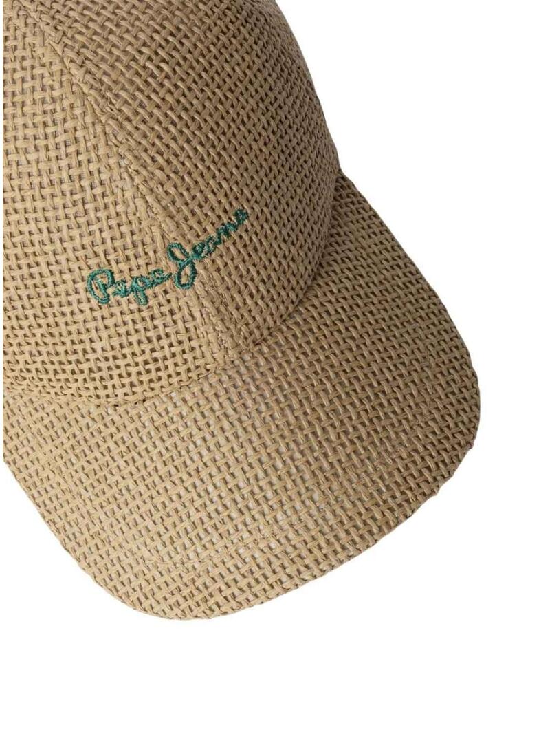 Boné Pepe Jeans. Modelo Gwen. Cor bege. Logotipo bordado na frente em verde. Textura em relevo.