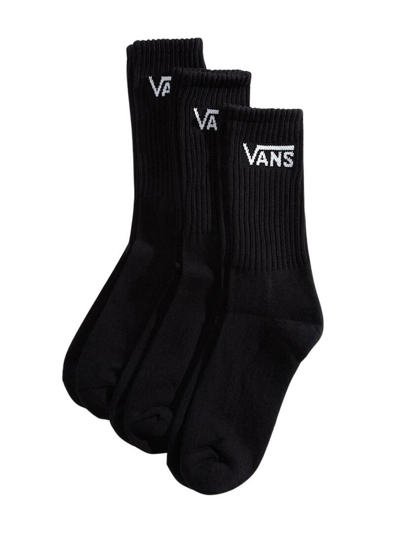 Pack 3 meias Vans altas Classic Crew pretas para homem e mulher.