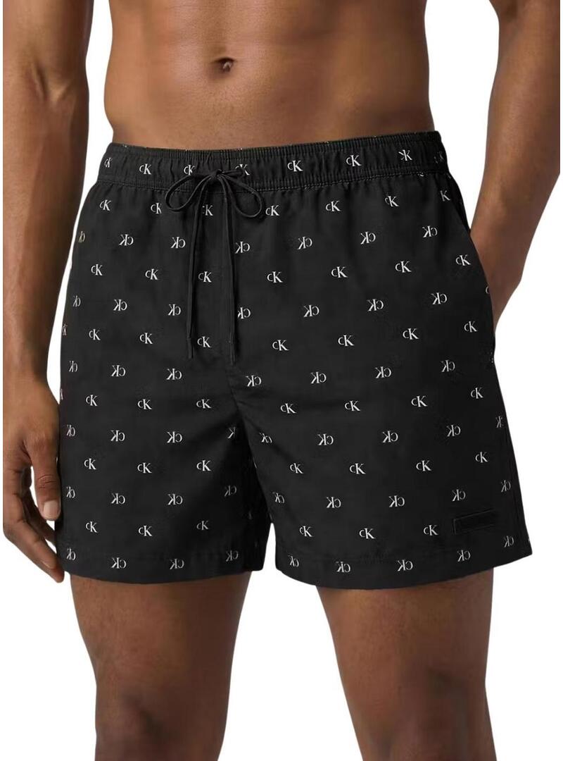 Fato de banho Calvin Klein preta com logo na frente para homem.