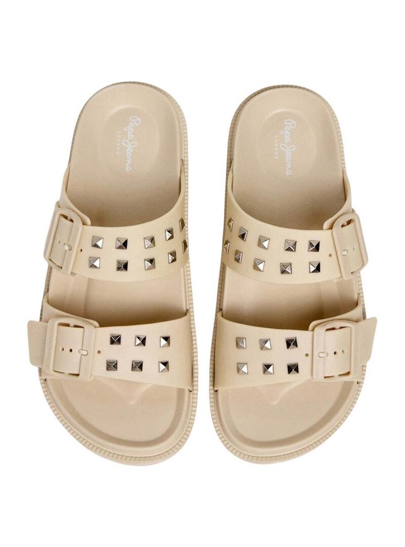 Sandálias Pepe Jeans. Modelo Ocean Studs. Cor bege. Dupla correia com fivela de fecho. Tachas prateadas na parte superior. Palmilha conformada.