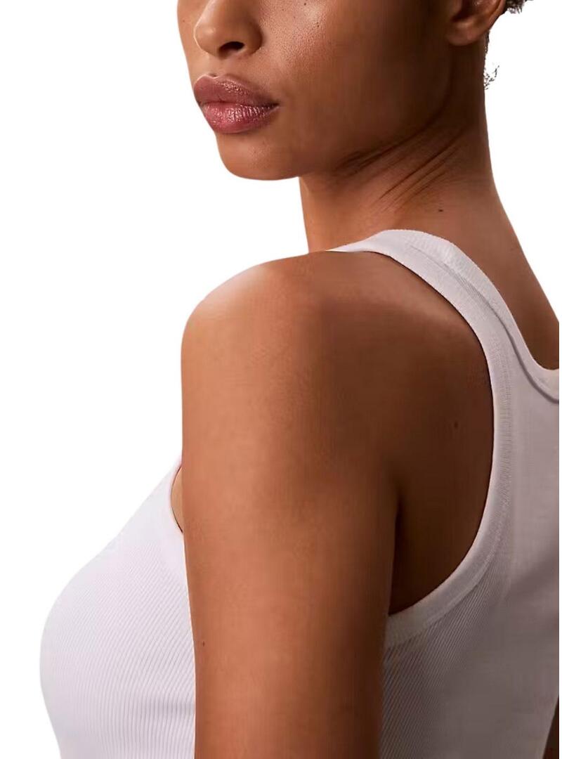 Camiseta Calvin Klein Jeans. Modelo Contour. Cor branca. Gola redonda. Alças largas. Estilo regata. Tecido canelado e elástico. Logo no peito.