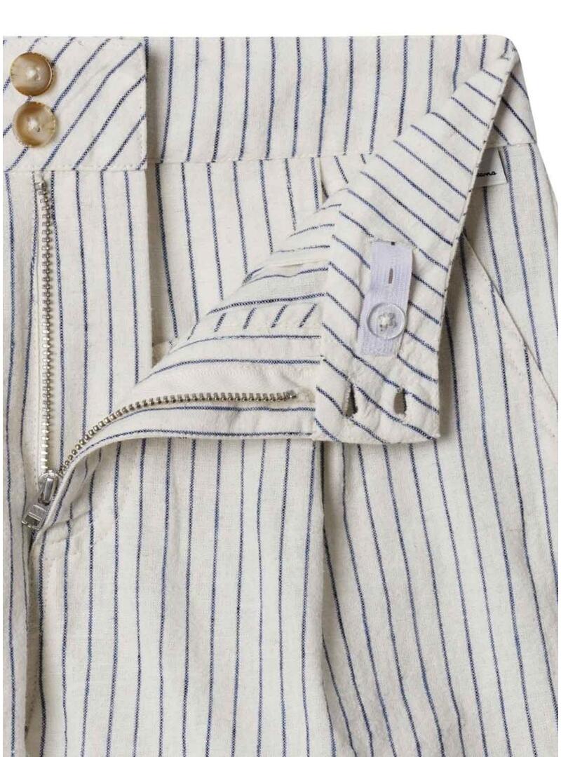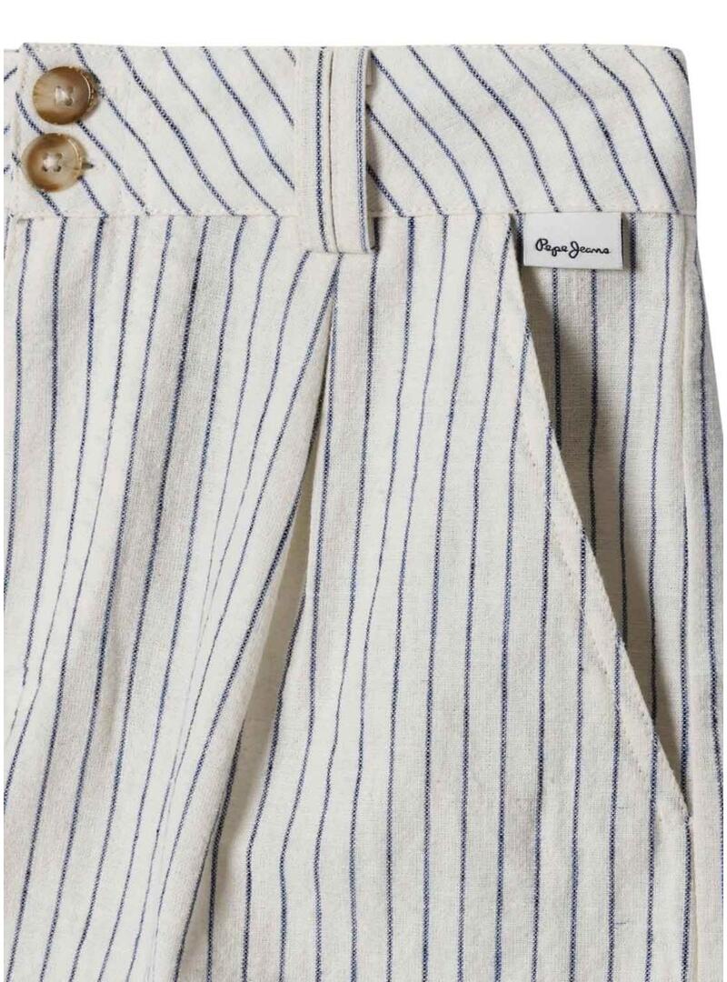 Shorts Pepe Jeans. Modelo Izzy. Cor beige. Motivo riscas diplomáticas. Bolsos laterais. Estilo chinês. Pregas na parte da frente. Bolsos traseiros. Passadores para cinto.