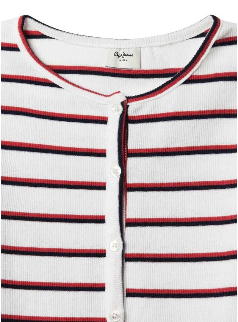 Camiseta Pepe Jeans. Modelo Angy. Motivo de listras horizontais. Tecido de malha canelada elástica. Gola redonda. Mangas curtas. Fechamento frontal com botões. Logo bordado na barra.