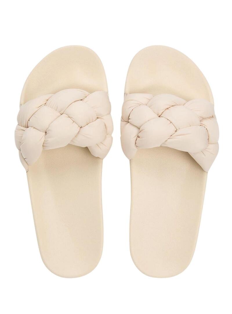 Chinelos Tommy Jeans de tiras trançadas bege para mulher.