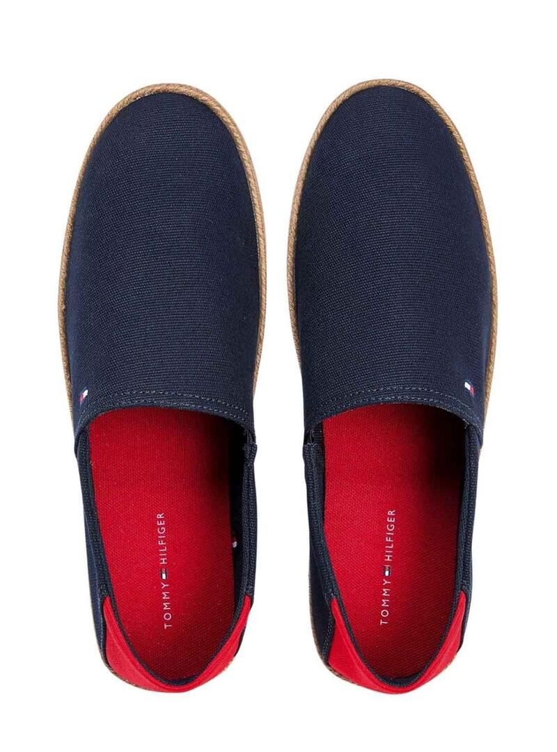 Alpargatas Tommy Hilfiger. Sem cadarços. Exterior de lona. Cor marinho. Sola de borracha. Entressola revestida de juta. Calcanhar vermelho. Logotipo da Tommy Hilfiger bordado na lateral.