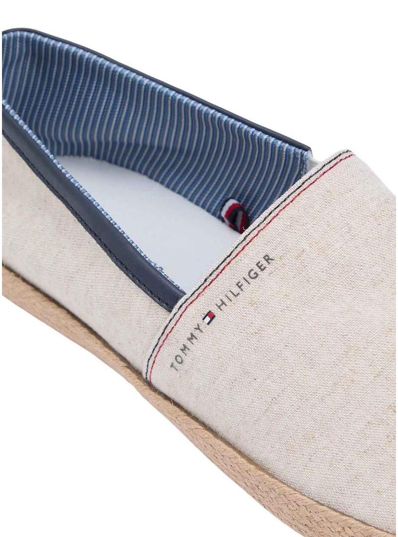 Alpargatas Tommy Hilfiger. Exterior de linho. Cor bege. Sola de borracha. Entressola revestida de juta. Detalhes em couro em contraste. Logo da Tommy Hilfiger na parte superior. Detalhes da marca. Bandeira da marca no calcanhar.