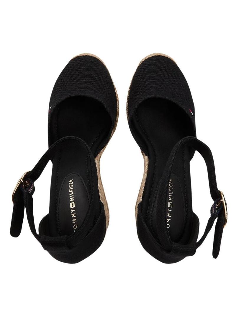 Alpargatas Tommy Hilfiger. Cor preta. Parte superior de lona. Sola de borracha. Salto alto de 10,2 cm. Tira no tornozelo com fivela. Logo da Tommy Hilfiger bordado na parte da frente. Altura da plataforma de 1,8 cm.