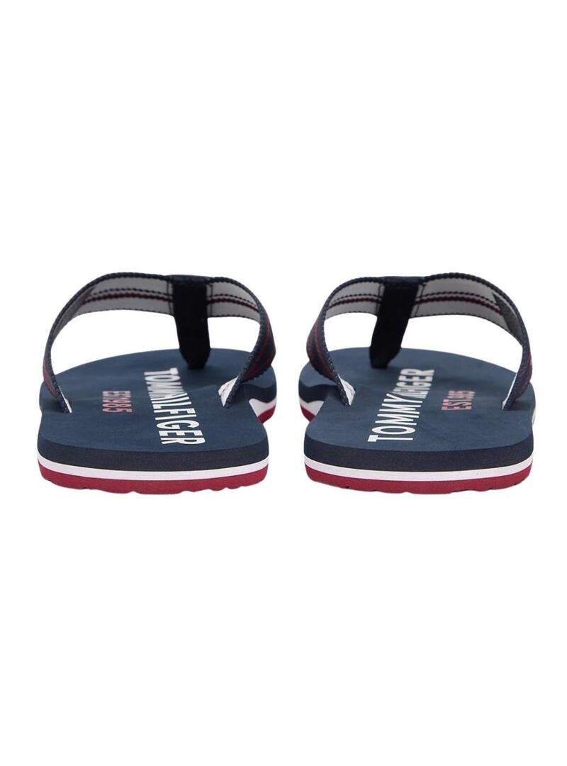 Chinelos Tommy Hilfiger. Cor marinho. Sola de EVA. Exterior de poliéster. Tiras de tecido trançado com fita distintiva. Logo da Tommy Hilfiger bordado na tira. Detalhe de listras na entressola. Altura da sola de 1,6 cm.