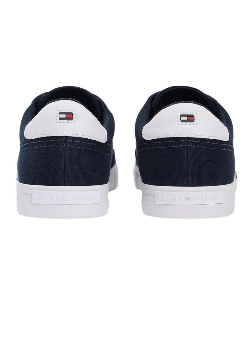 Sapatilhas Tommy Hilfiger Vulc Core em lona marinha para homem.