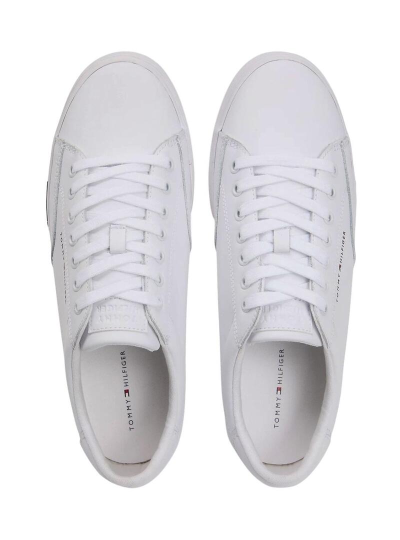 Sapatilhas de couro branco Tommy Hilfiger Vulc Core para homem.