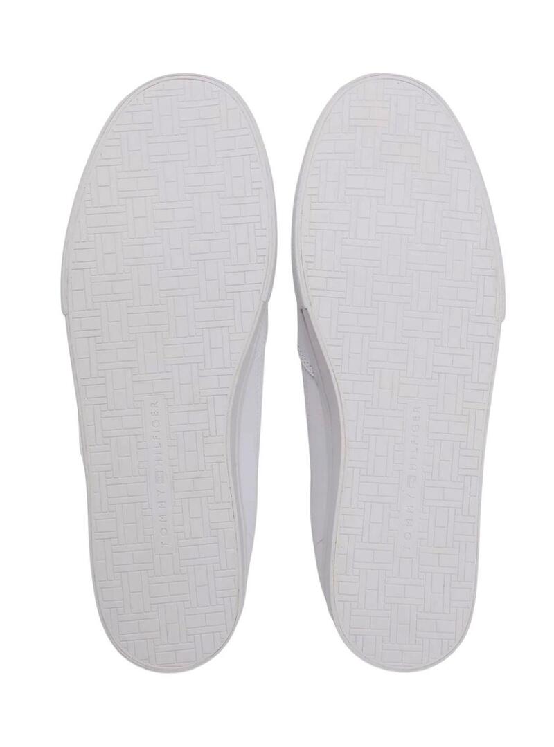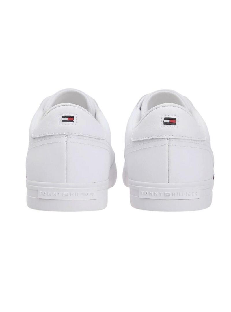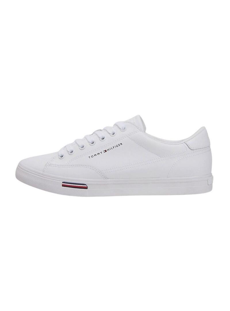 Sapatilhas Tommy Hilfiger. Cor branca. Corte baixo. Fecho com cordões. Exterior combinado de couro. Logotipo lateral. Sola de borracha vulcanizada. Detalhe distintivo em borracha na entressola. Palmilha removível. Logotipo em borracha da Tommy Hilfiger no calcanhar.