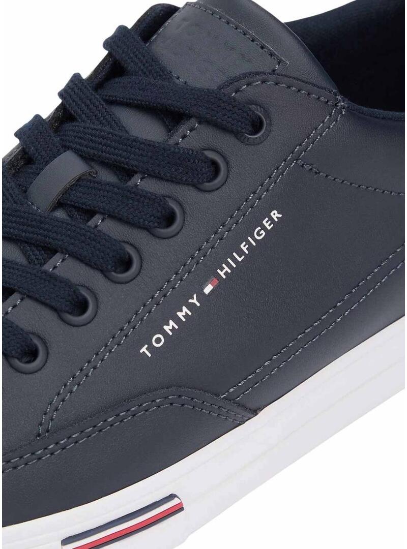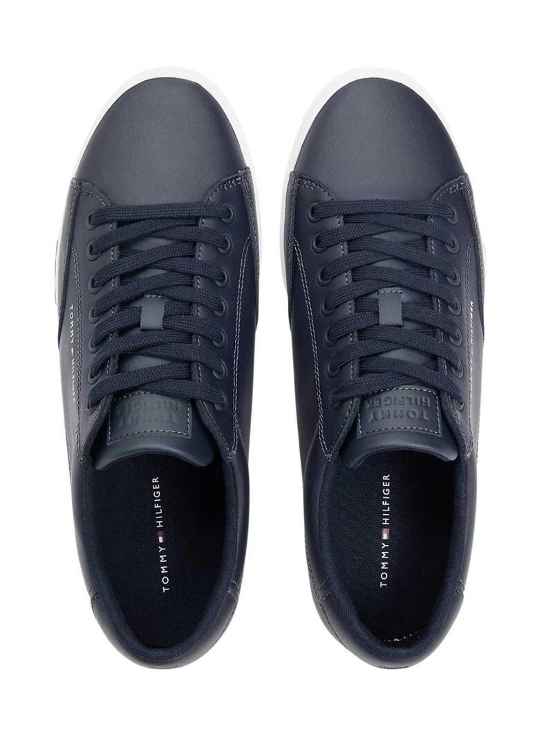 Ténis de couro azul marinho Tommy Hilfiger Vulc Core para homem.