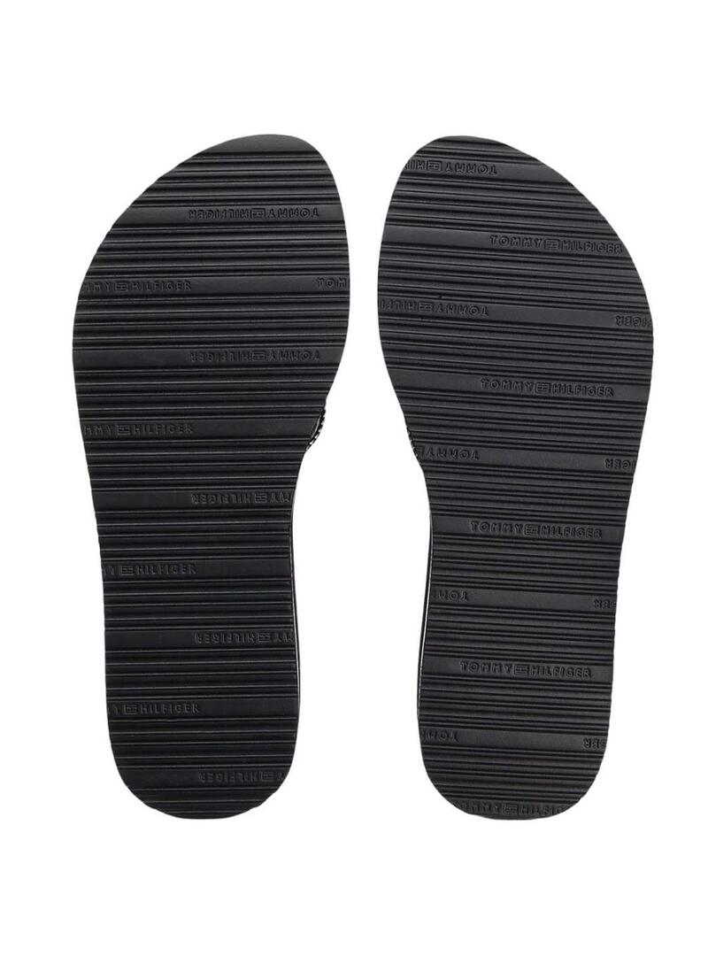 Chinelos Tommy Hilfiger. Cor preta. Sola de EVA. Exterior de poliéster. Tiras trançadas em Jacquard. Com cunha. Altura da sola de 3,8 cm. Detalhes distintos da Tommy Hilfiger.