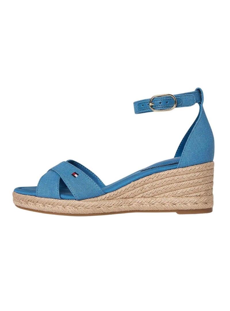 Alpargatas azuis Tommy Hilfiger com cunha média cruzadas para mulheres.