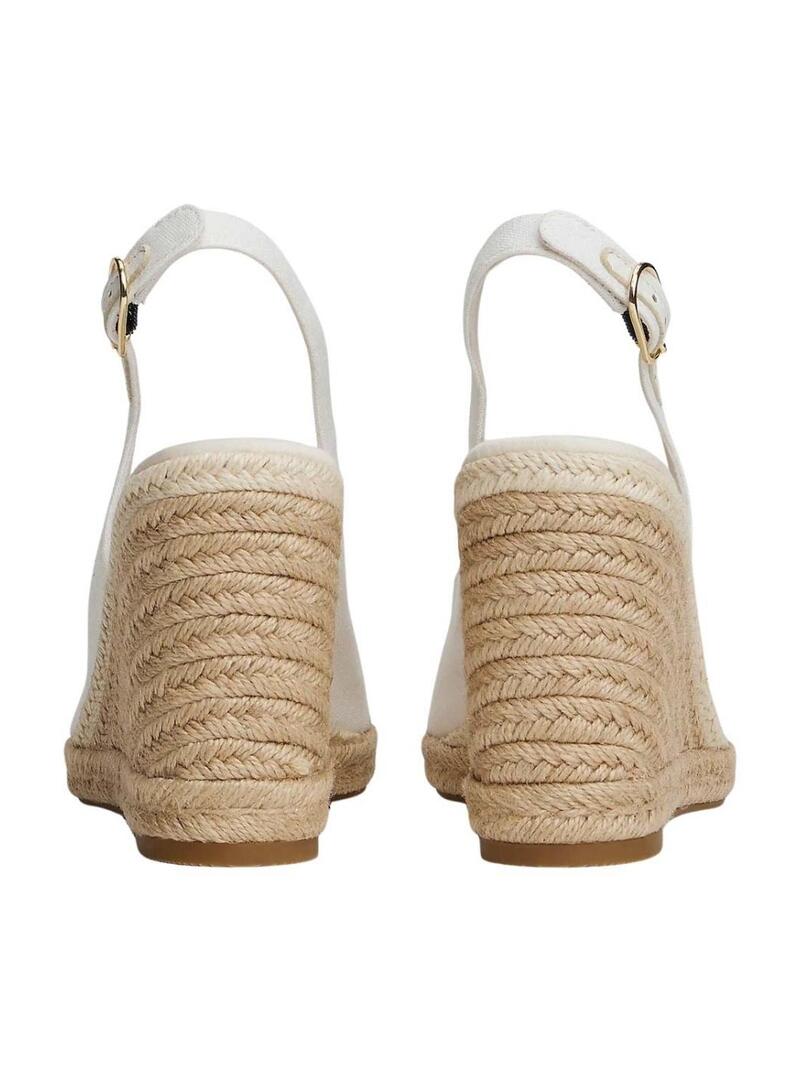 Alpercatas Tommy Hilfiger. Cor branca. Parte superior de cânhamo. Sola de borracha. Cunha de 10,2 cm. Altura da plataforma de 1,8 cm. Tira no tornozelo com fivela. Sem calcanhar. Logotipo da Tommy Hilfiger bordado na lateral. Entressola revestida com juta. Ponta aberta.