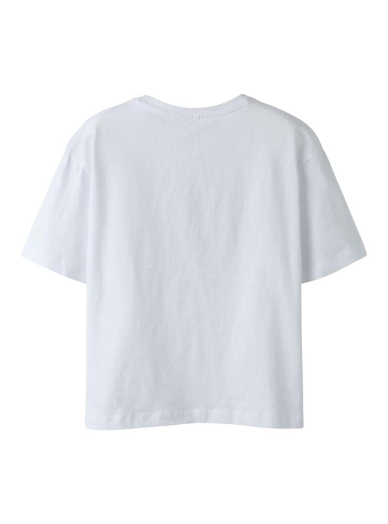 Camiseta Name It. Modelo Fahiraz. Cor branca. Gola redonda. Manga curta. Estampa de coração na parte da frente. Corte regular.