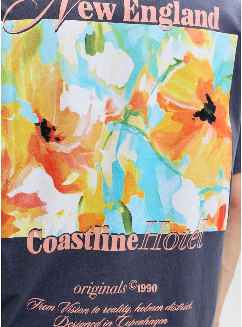 Camiseta Jack and Jones Hawaii Shape azul marinho para homem.
