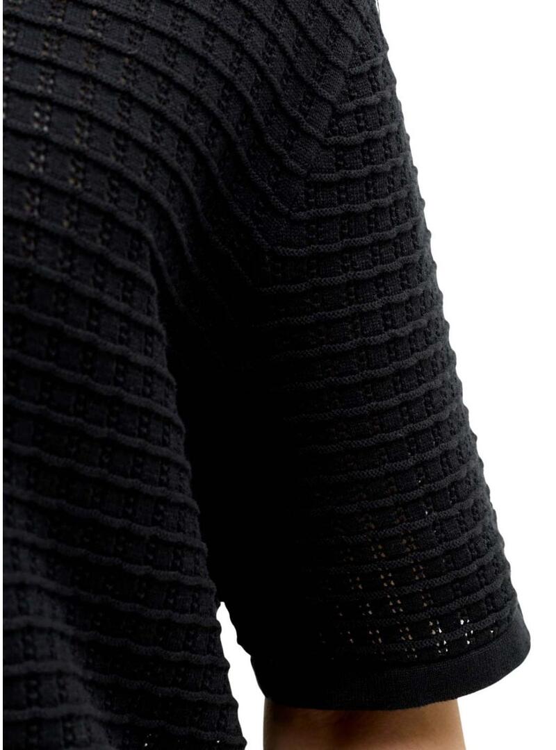 Camisa Jack and Jones. Modelo Nantucket. Cor preta. Gola camiseira com decote em V. Manga curta. Ajuste folgado. Tecido de malha em relevo.