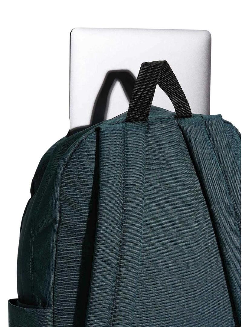 Mochila Vans. Modelo Old Skool Classic. Cor verde. Tecido liso. Fecho principal com zíper. Compartimentos laterais. Bolso exterior com zíper. Emblema da marca. Alça superior. Alças ajustáveis e acolchoadas. Capacidade de 22 litros. Medidas: 42,2 x 32,4 x 12,4 cm. Compartimento interno para laptop.