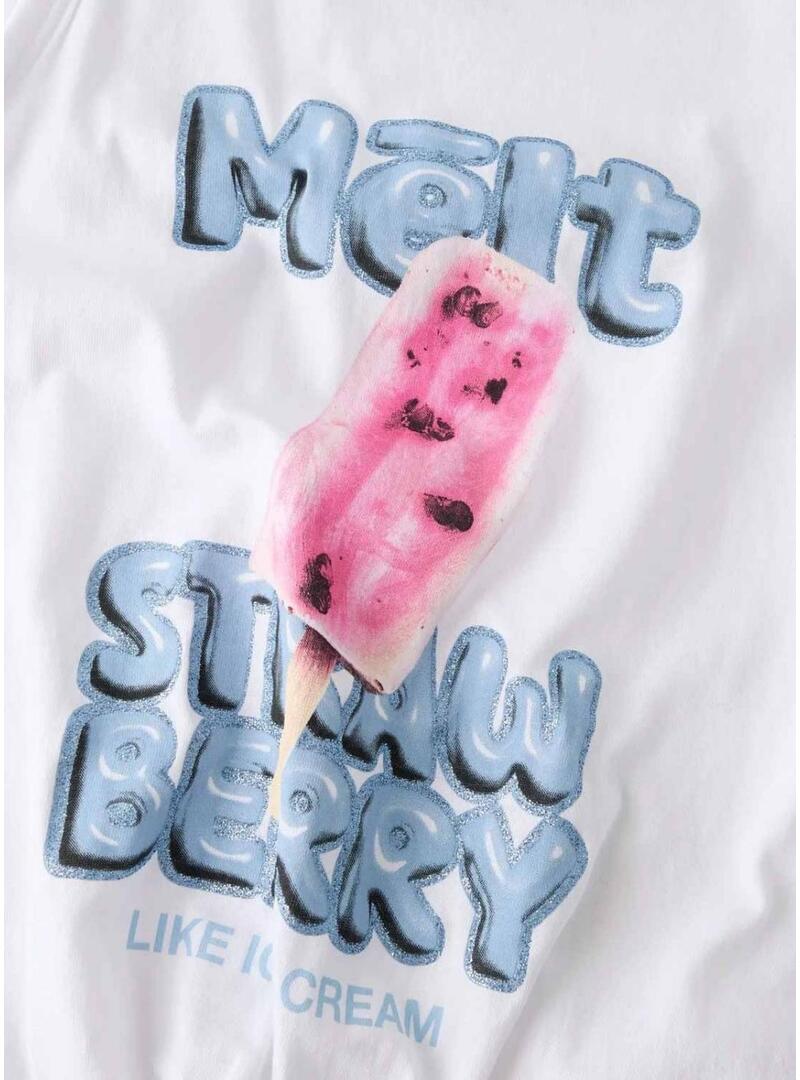 Top Name It. Modelo Fadeaz. Cor branco. Sem mangas. Gola redonda. Estampado no peito com purpurina. Detalhe de laço ajustável na parte da frente. Feito em algodão orgânico. Corte regular.