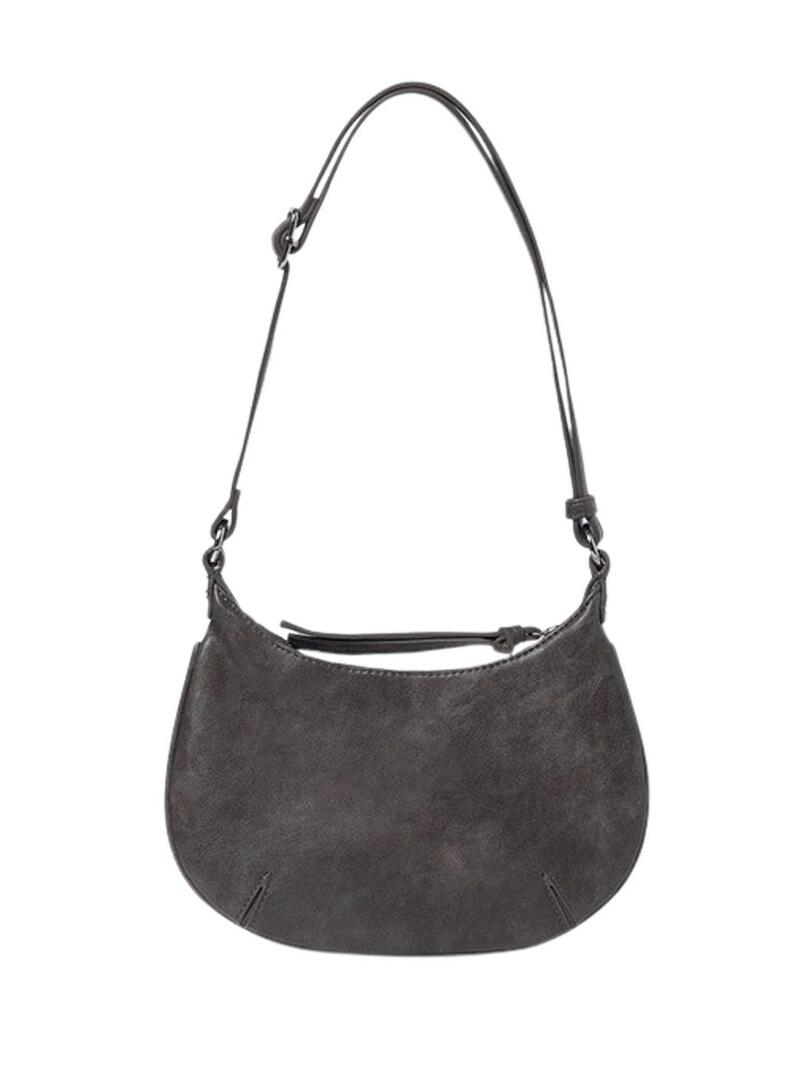 Bolsa Mayoral. Modelo de tachas. Cor antracite. Alça ajustável. Fecho com zíper. Tachas prateadas. Costura central. Formato de meia lua.