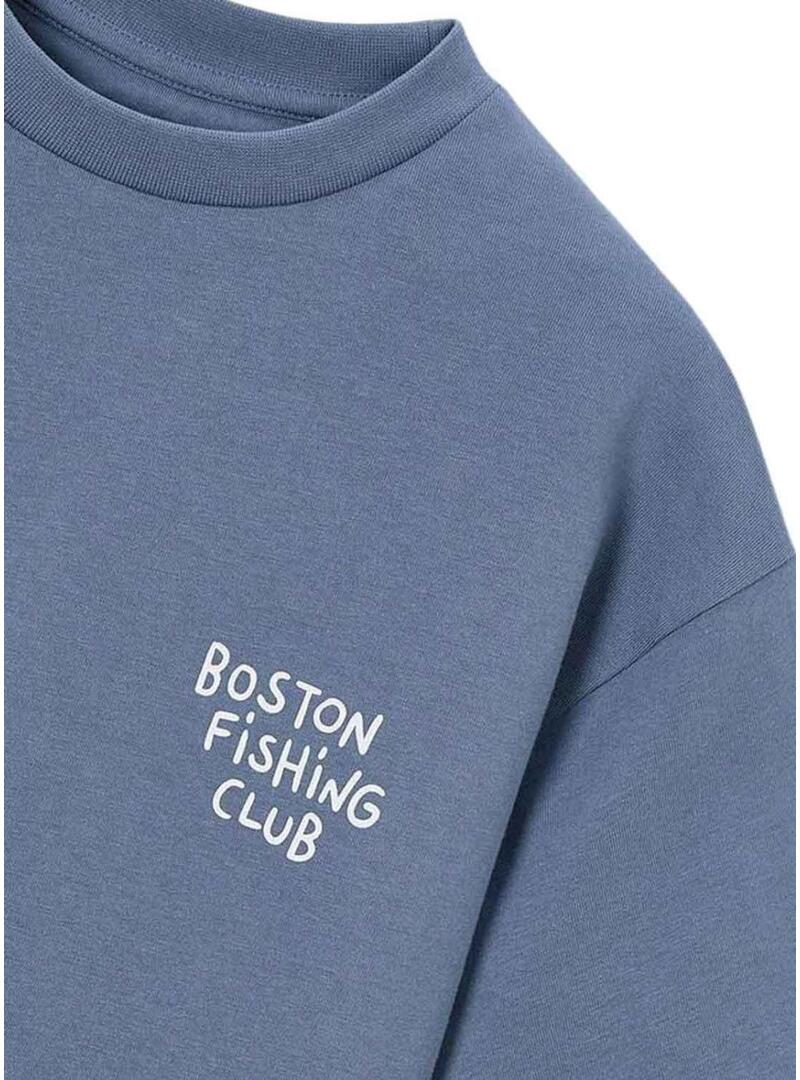 Camiseta Mayoral Boston Fishing Club azul médio para criança
