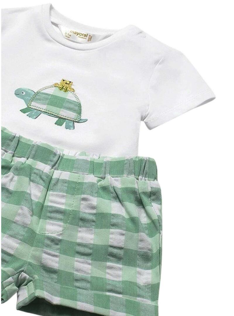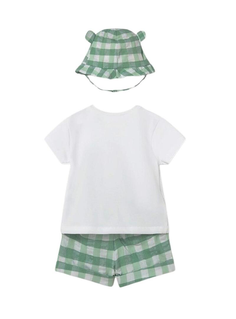 Conjunto de três peças Mayoral tartaruga verde vichy para bebê menino.