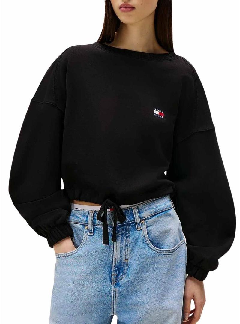 M174669 mkjy5mso Moletom Tommy Jeans Logo preto para mulher.