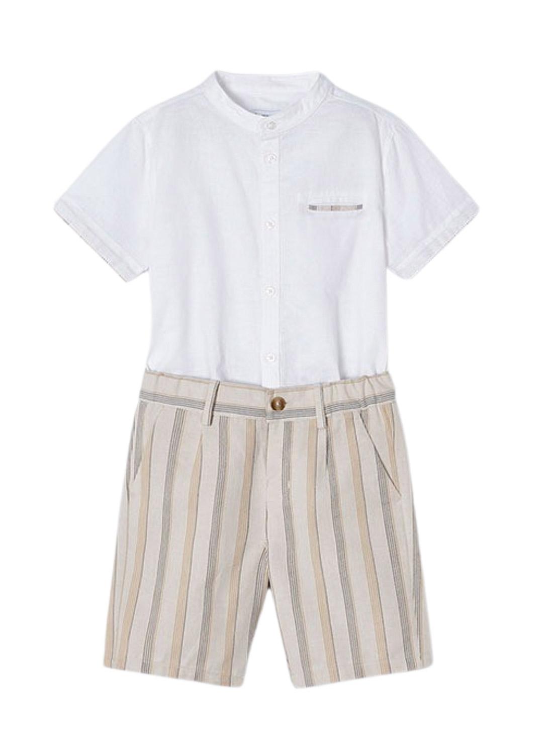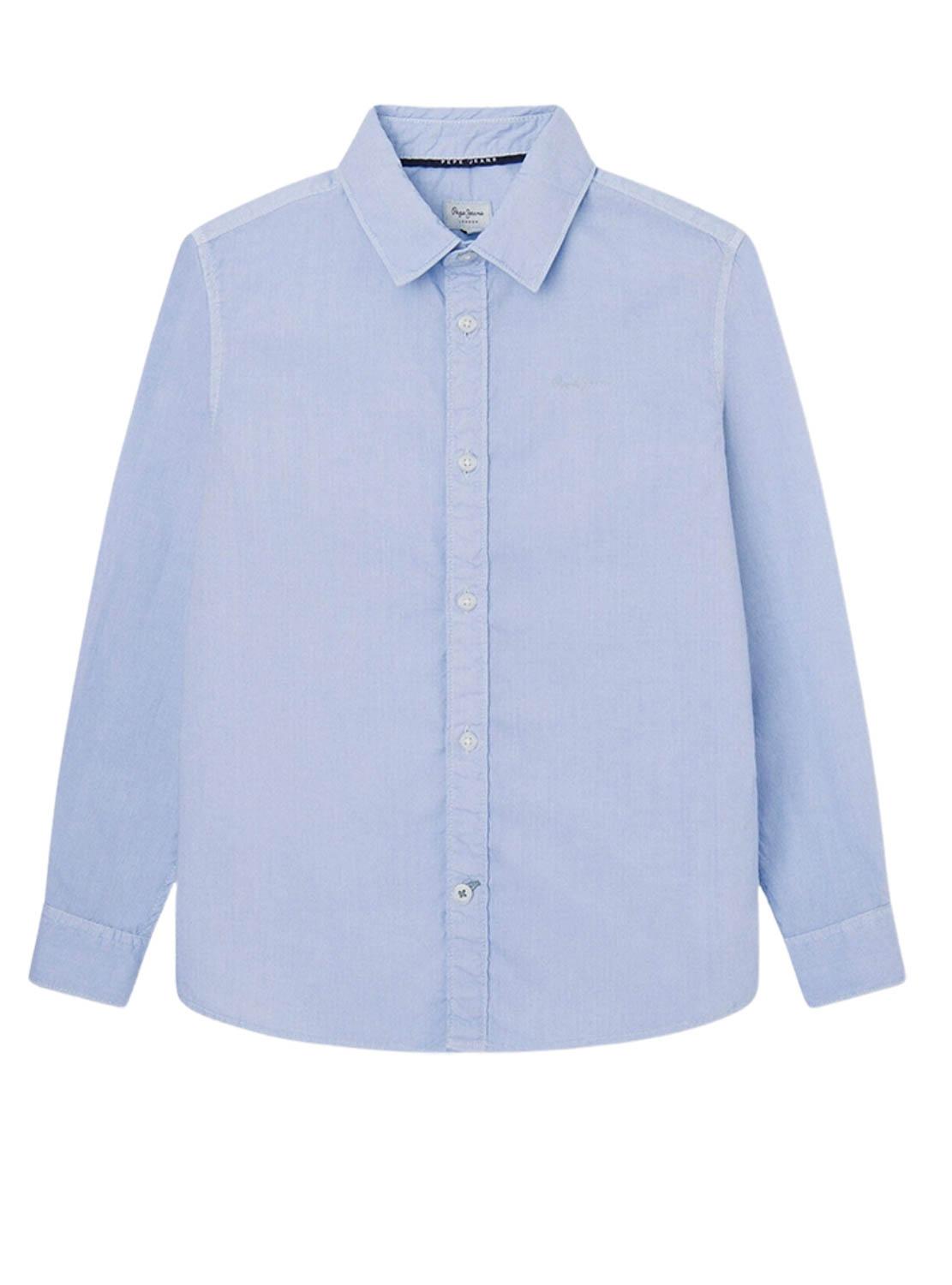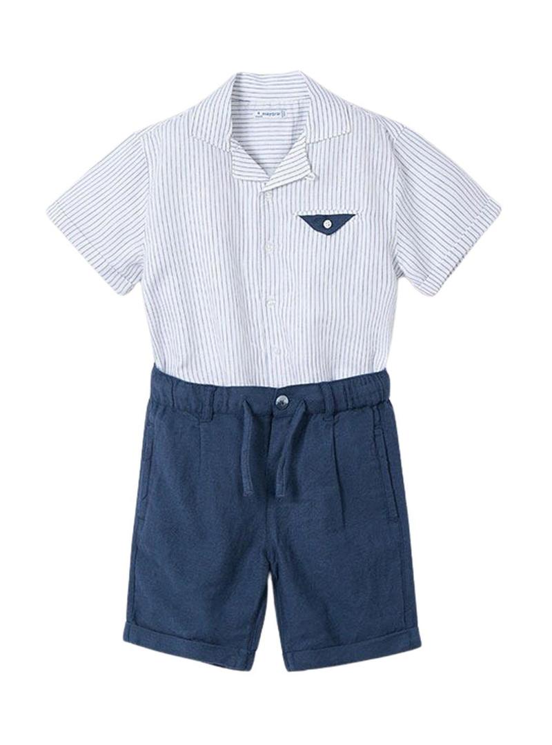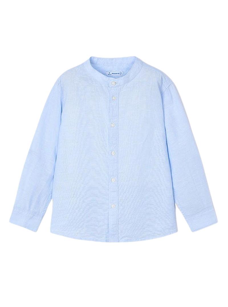Camisa de manga larga Mayoral com gola mandarim em azul marinho para menino