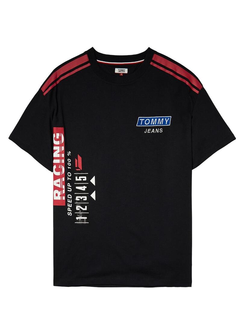 Tommy Jeans dress Modelo logo. Cor preta Manga curta. Pescoço redondo. Ajuste solto. Formato curto Corrida de impressão. Estilo de camiseta Tommy Jeans no peito.