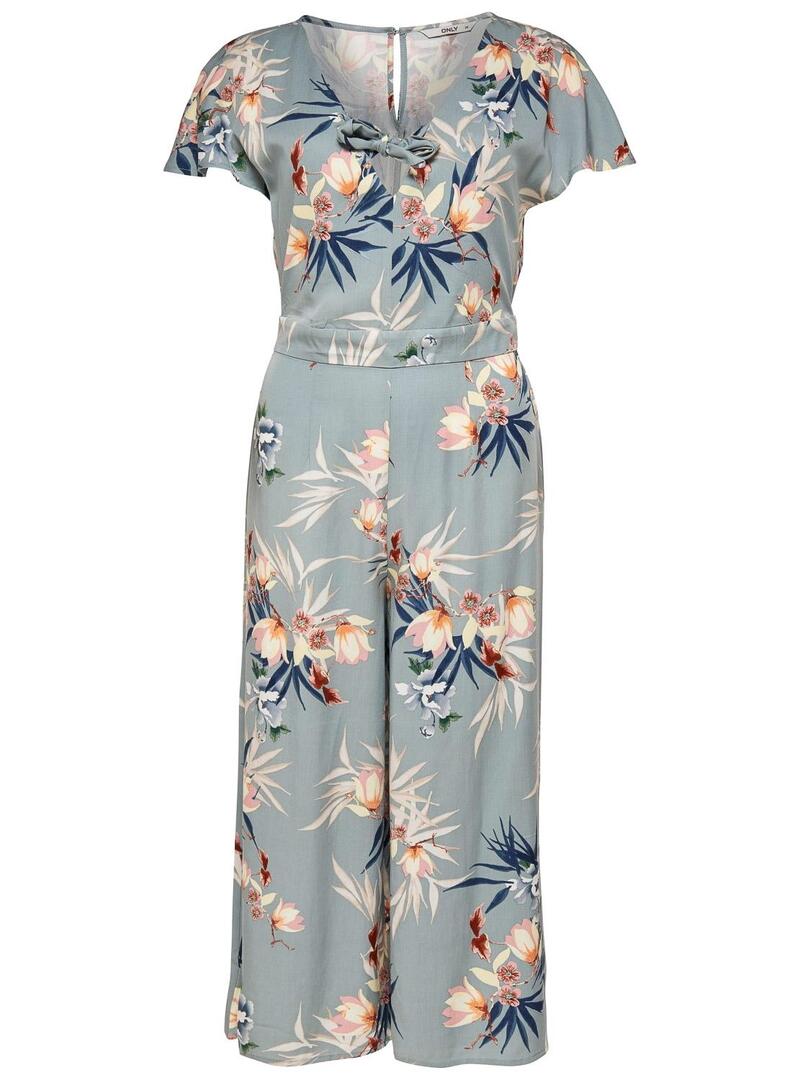 Jumpsuit Only. Modelo Devon. Culote Jumpsuit. Manga curta. Tecido de cetim Detalhe do pico de decote com lazada. Estampa floral.