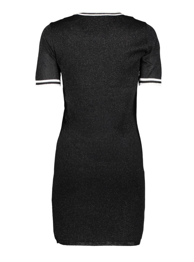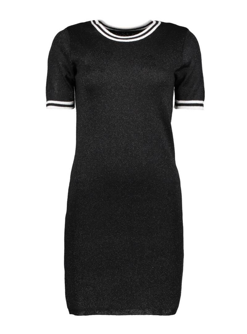 Only vestido. Modelo Galaxy Cor preta Pescoço redondo. Manga curta. Tecido com brilho Pescoço e mangas em contraste. Formato cabido