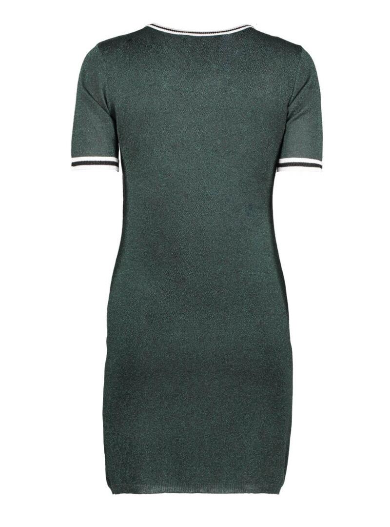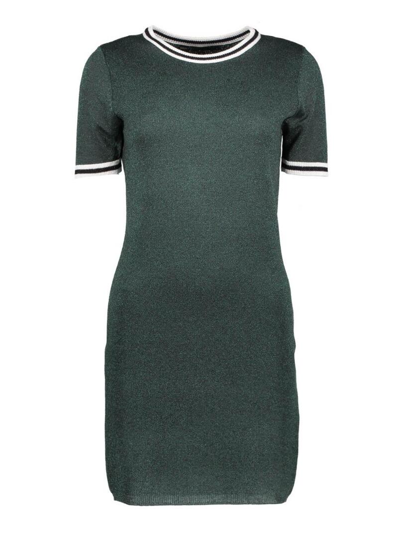 Only vestido. Modelo Galaxy Cor verde. Pescoço redondo. Manga curta. Tecido com brilho Pescoço e mangas em contraste. Formato cabido