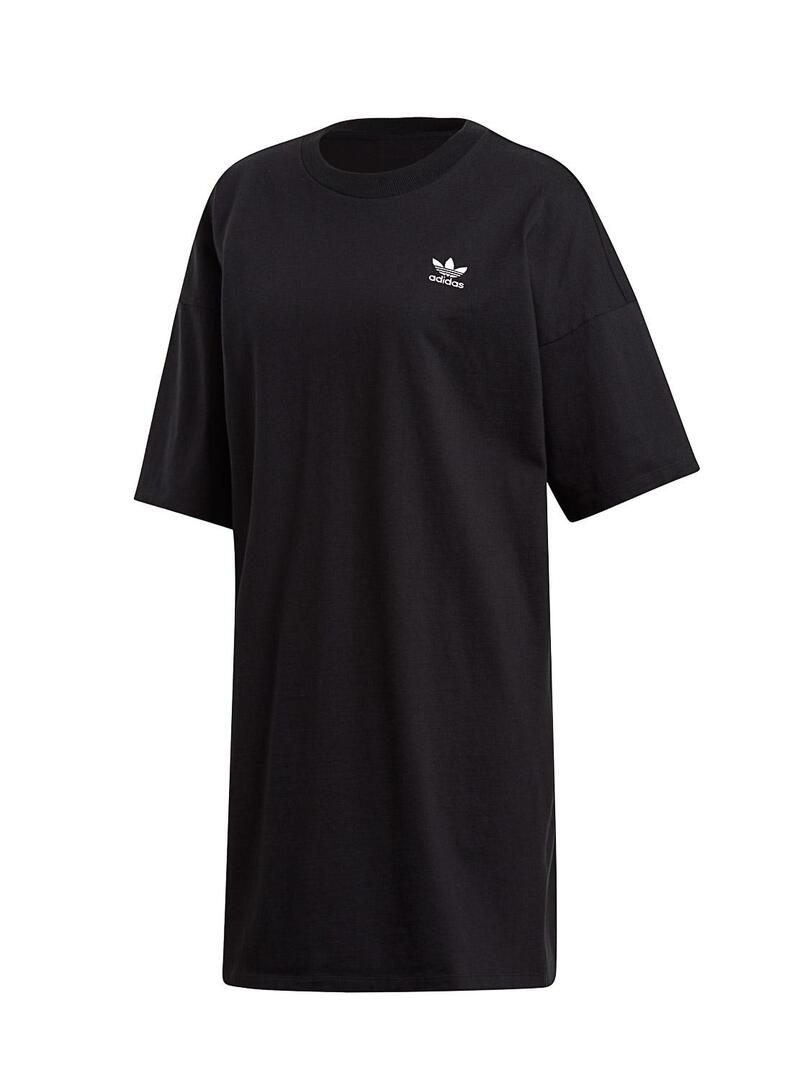 Vestido Adidas Modelo Trefoil Cor preta Manga curta. Pescoço redondo. Logotipo grande nas costas. Ajuste solto. Aberturas laterais. Logo no peito. Tecido leve O modelo está usando tamanho 34.