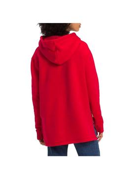 Sweat Tommy Jeans. Modelo de fenda. Cor vermelha Pescoço redondo. Com capuz. Manga comprida. Ajuste solto. Bolso canguru Logo no seu bolso. O modelo usa tamanho S.
