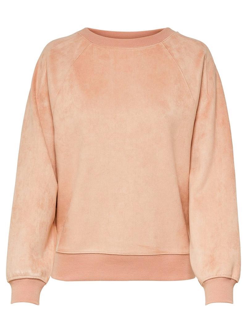 Sweat Only. Modelo ELLA Cor rosa. Para mulheres. Manga comprida. Pescoço redondo. Mangas de morcego. Tecido elastico. Bordas com nervuras. O modelo usa tamanho S.