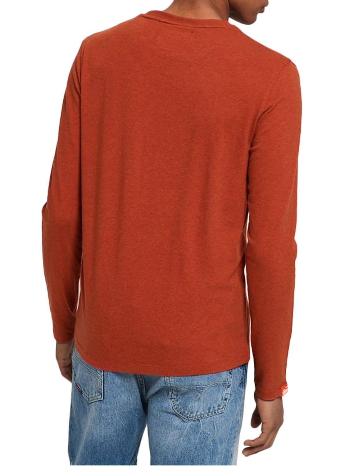 T-Shirt Superdry. Modelo Vintage. Cor laranja. Pescoço redondo. Manga comprida. Logotipo bordado no peito. Etiqueta na extremidade da manga.