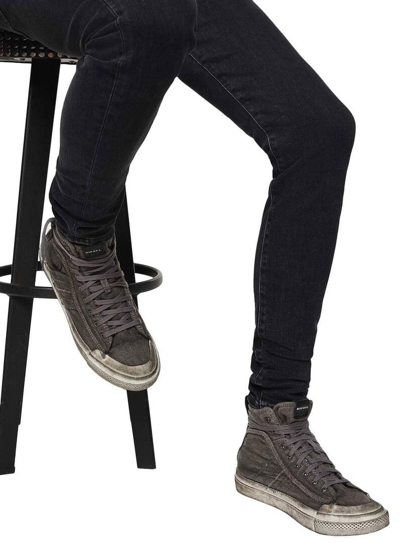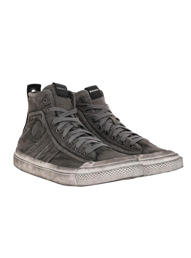Sapatilhas Diesel. Modelo Astico. Cor cinzenta. Fecho com cordões. Sola de borracha. Haste média. Efeito desgastado. Logotipo bordado na lateral. Dedo reforçado.