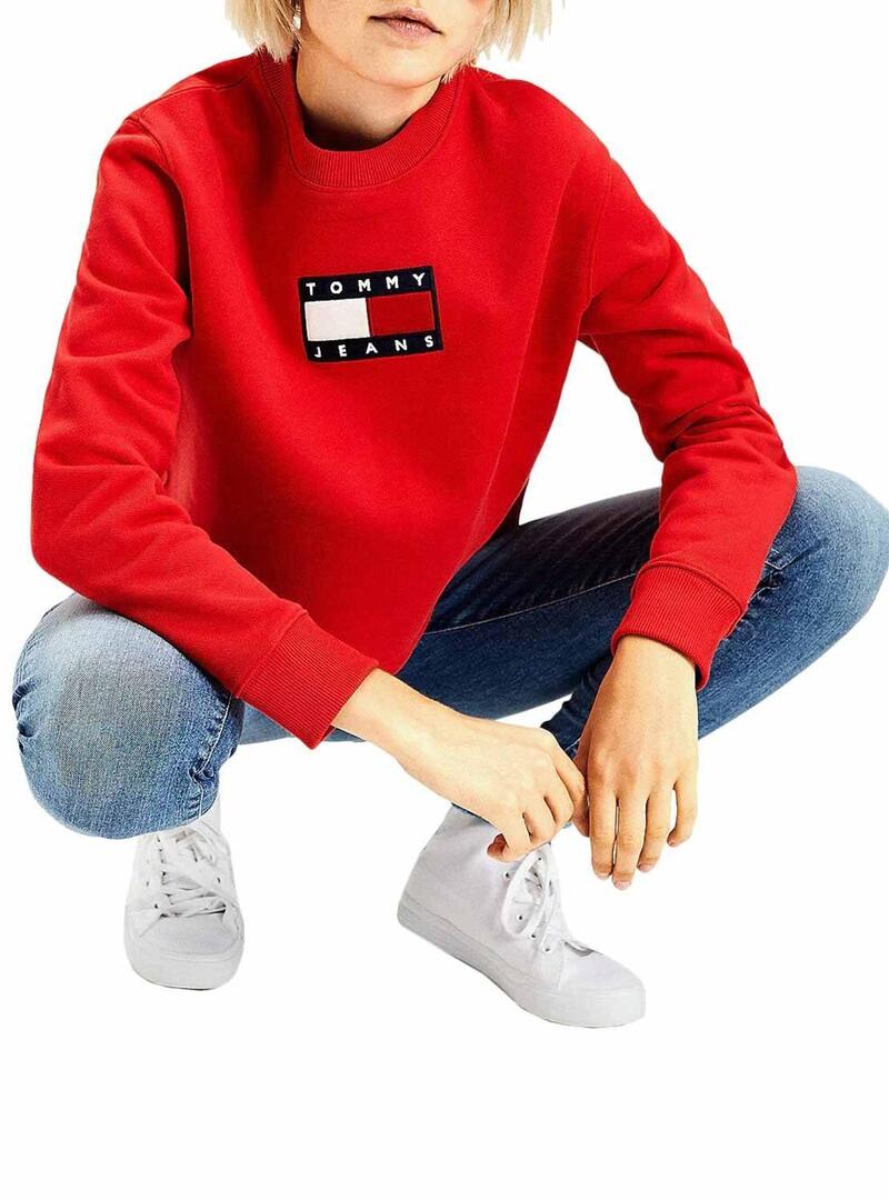 Sweat Tommy Jeans Crew Vermelho para Mulher