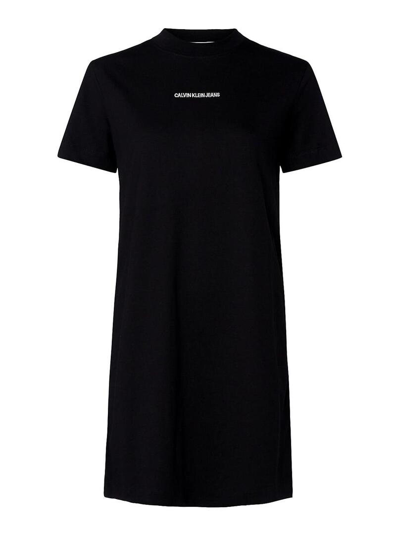 Vestido Calvin Klein Jeans. Cor preta. Manga curta. pescoço redondo. Bordado CALVIN KLEIN no peito. Tecido espesso. Formato regular. Acabamento em malha com logotipo nas laterais. A modelo usa tamanho S.