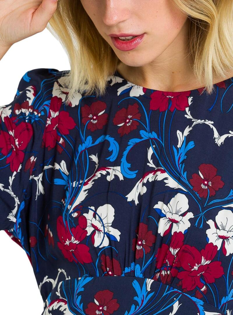 Vestido Naf Naf. Formato curto. Manga francesa. Pescoço redondo. Estampa floral. Ajustado na cintura. Fluido Saia. Fechamento nas costas. A modelo usa um tamanho 36.