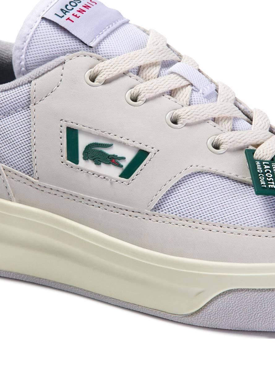 Sapatilhas Lacoste. Color Branco. Modelo G80 OG 120. borracha sola branca. Entressola com orifícios respiráveis. Fecho com cadarço. Etiqueta verde borracha com inscrição lacoste. Logotipo da Lacoste na lateral. Marca no calcanhar.