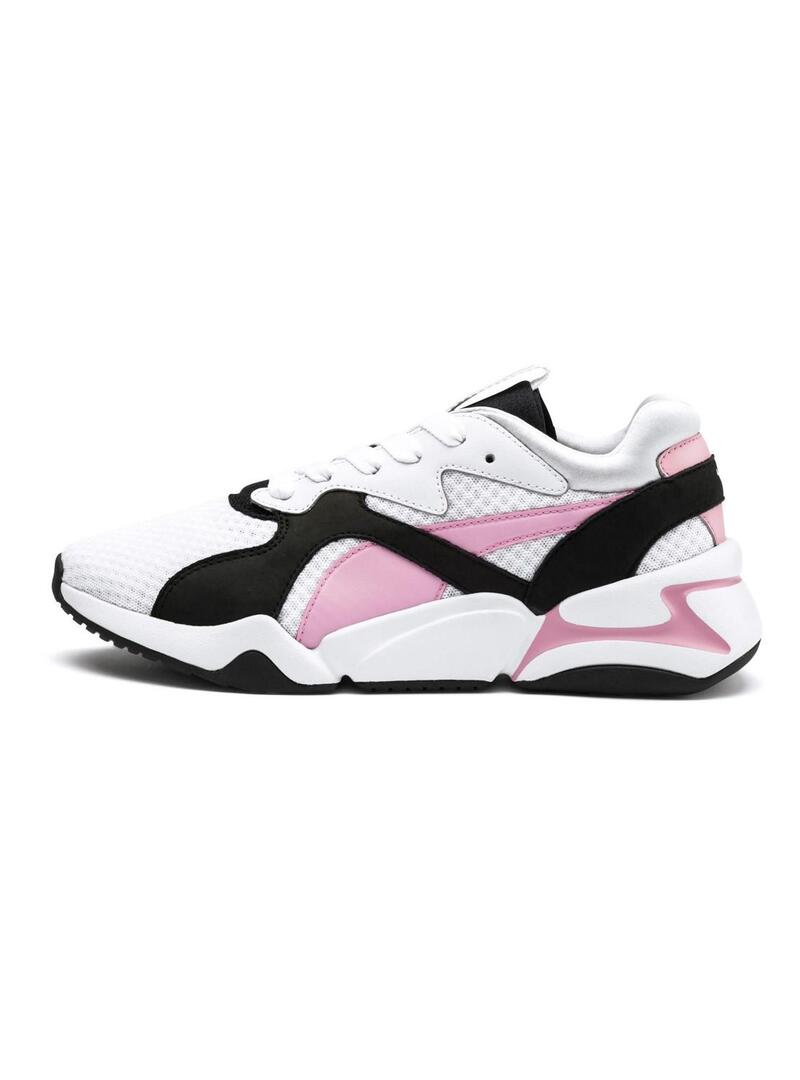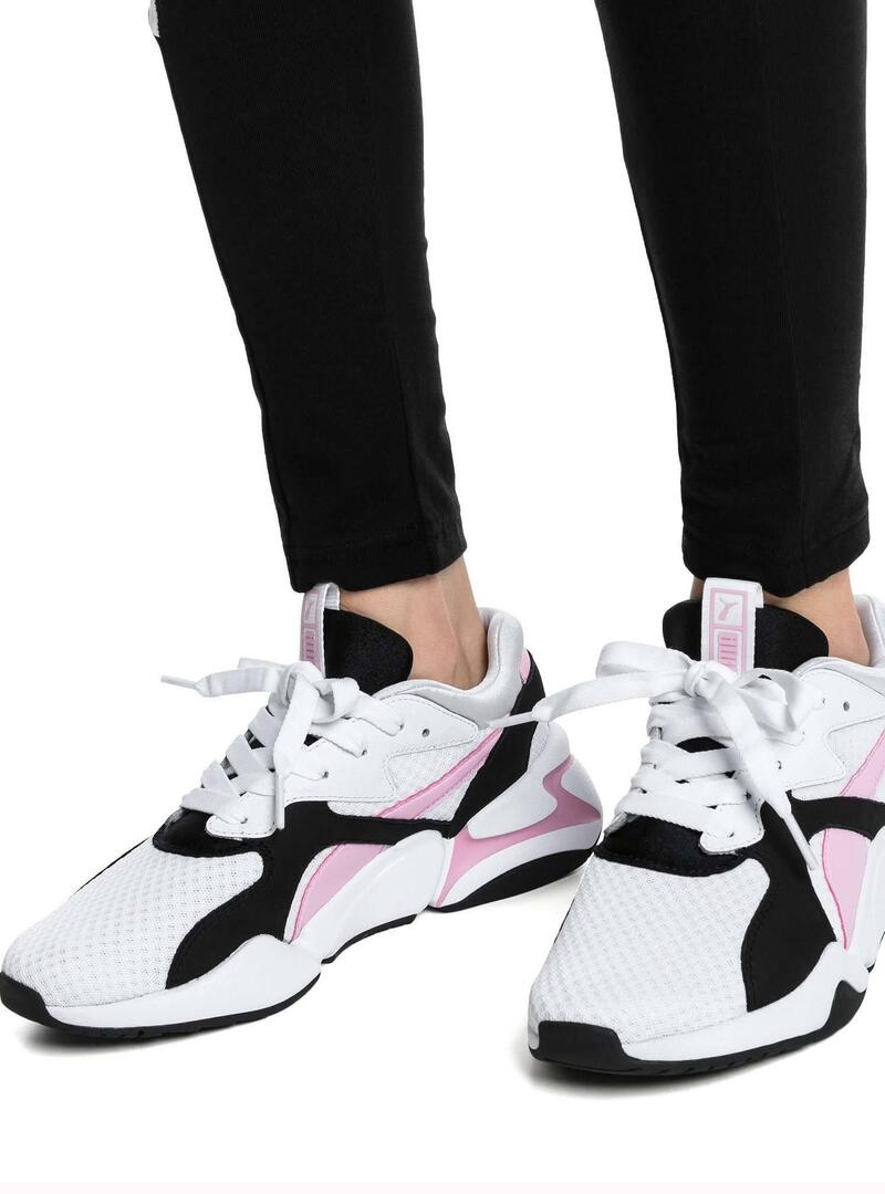 Sapatilhas Puma. Modelo Nova 90s. Cor branca. Malha externa e tecido de camurça. Detalhes em couro rosa. Sola de borracha Entressola IMEVA para um leve toque e modo. Detalhe da marca na língua. Estilo retro