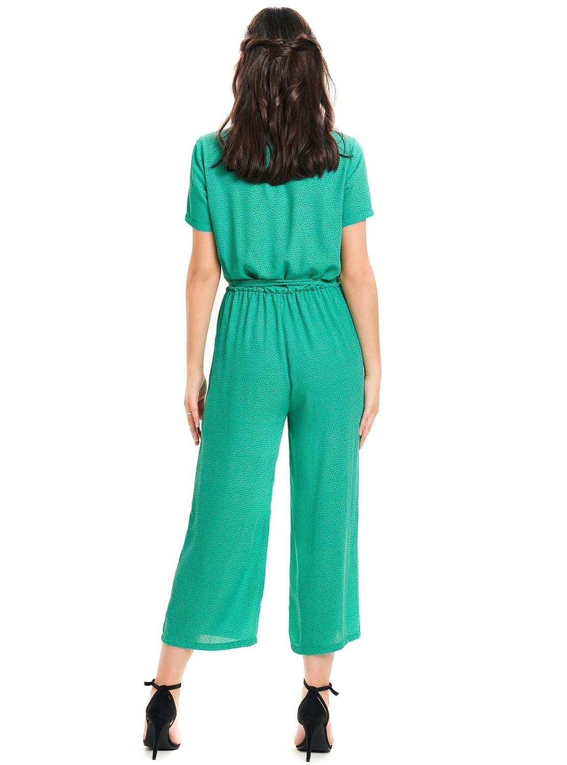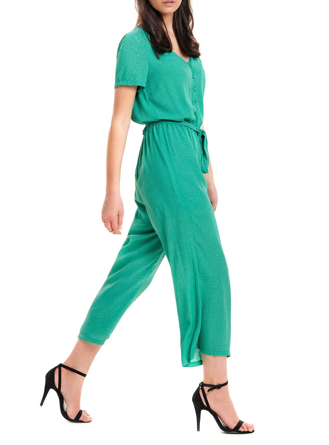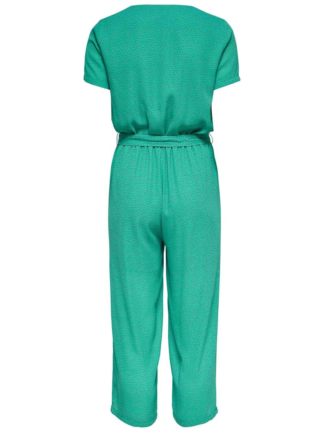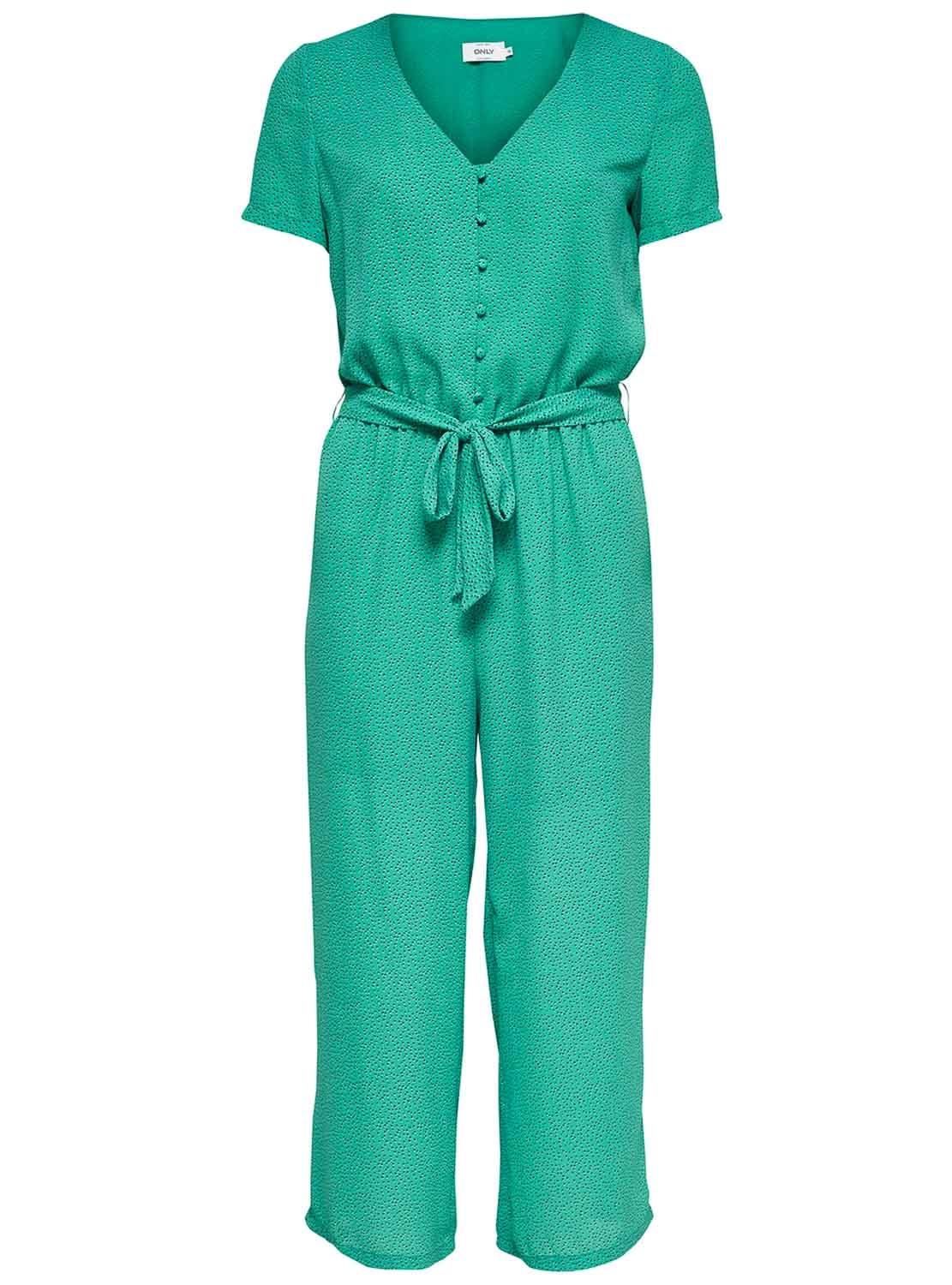 Jumpsuit Only. Modelo Pippa. Manga curta. Gola V. Fechamento de botão. Cinto de laço. Impressão. Ajuste solto. Perna estilo culotte.