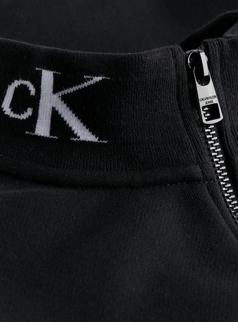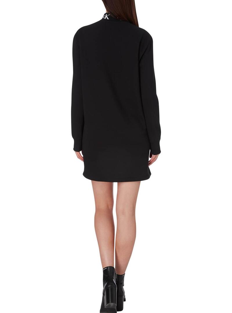 Vestido Calvin Klein Jeans. Modelo Trim Mock. Cor preta. Gola alta com fecho. Manga comprida. Mini corte. Bolsos laterais. Regular fit Marca estampada no peito. Logotipo bordado no pescoço.